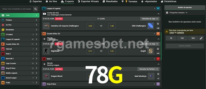 A aposta 78G oferece aos jogadores a experiência mais conveniente de apostas em eSports!